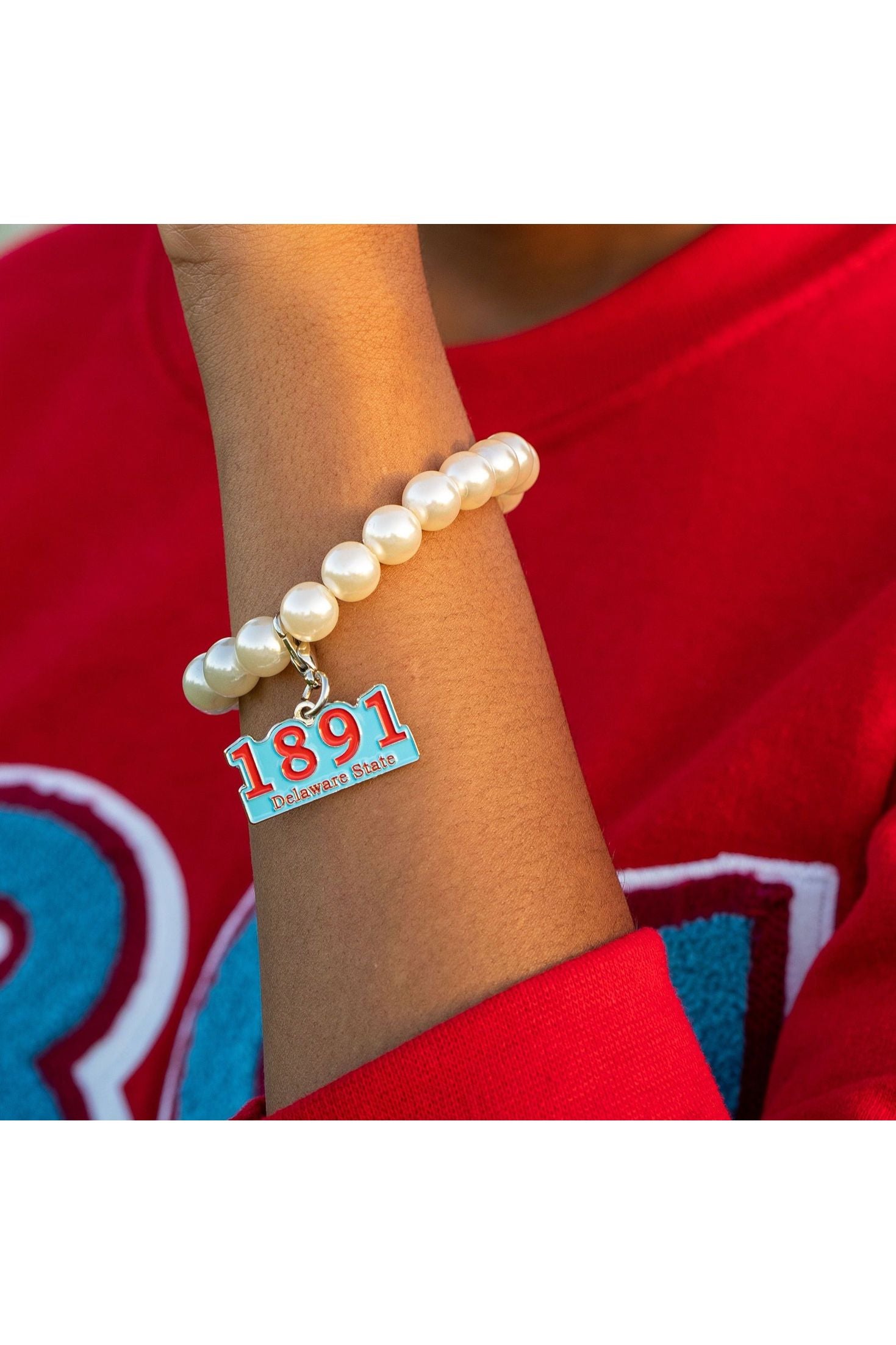 Glam up your arm candy with our signature pearl bracelet adorned with your beloved HBCU Founding Year charm. These stackable stretch bracelets are the must have accessory, present or gift.