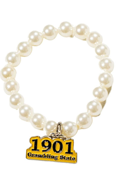 Glam up your arm candy with our signature pearl bracelet adorned with your beloved HBCU Founding Year charm. These stackable stretch bracelets are the must have accessory, present or gift.