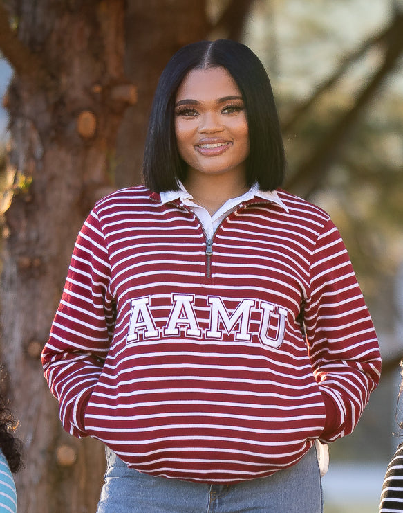 Alabama A&M University Striped Zip-Up Sweatshirt (Unisex)