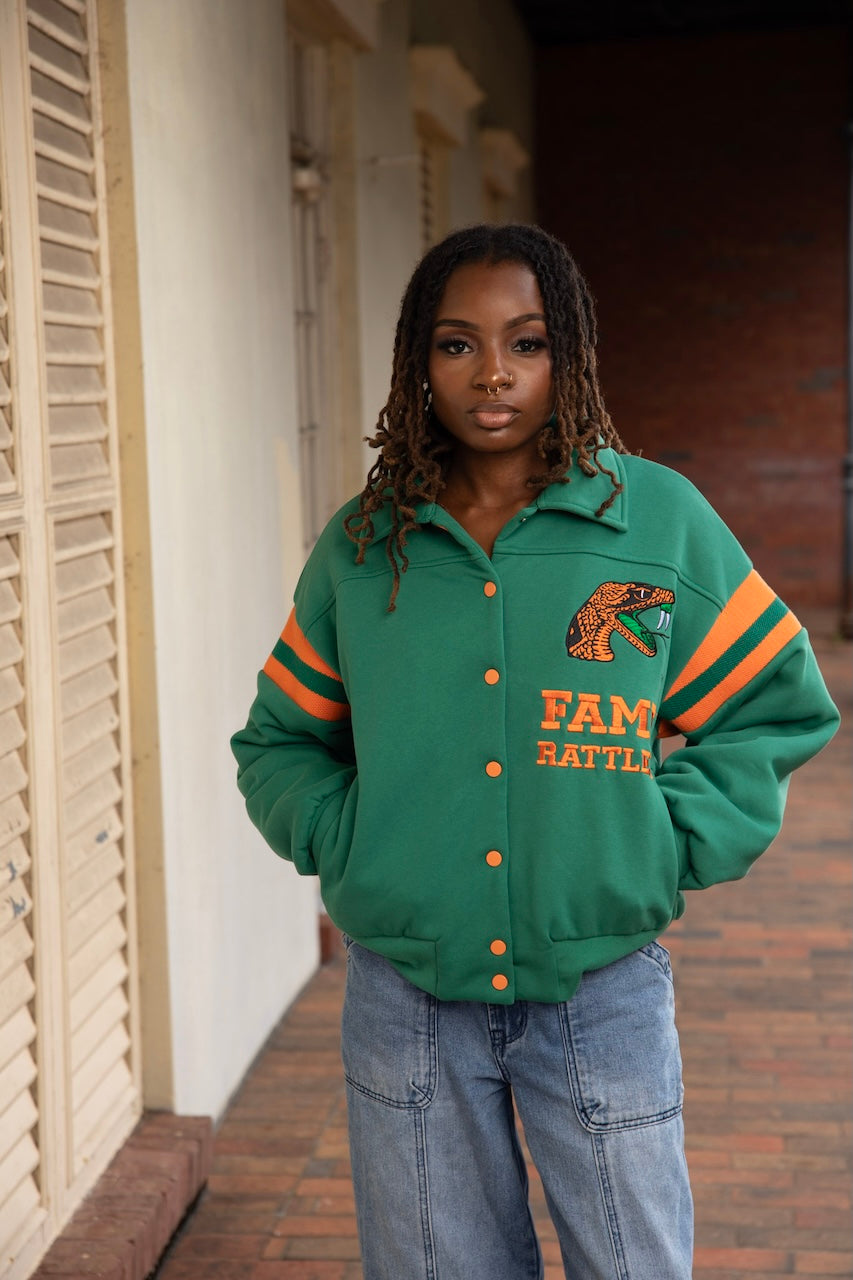 A true staple for any Rattler fan — the FAMU Varsity Jacket is built to last and made to stand out.