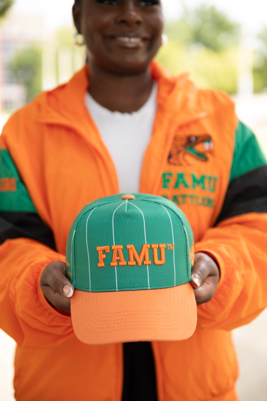 Show your Rattler pride in style with the Florida A&M Striped Cap! Featuring bold embroidered FAMU details and sleek striped accents, this cap is the perfect finishing touch to any game day outfit. Crafted for comfort with a breathable design and an adjustable strap, it offers a secure fit whether you’re in the stands, at a tailgate, or repping FAMU around town.
