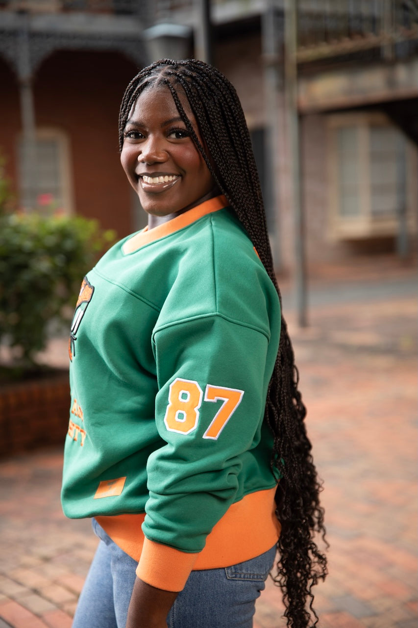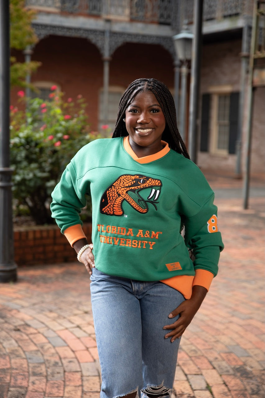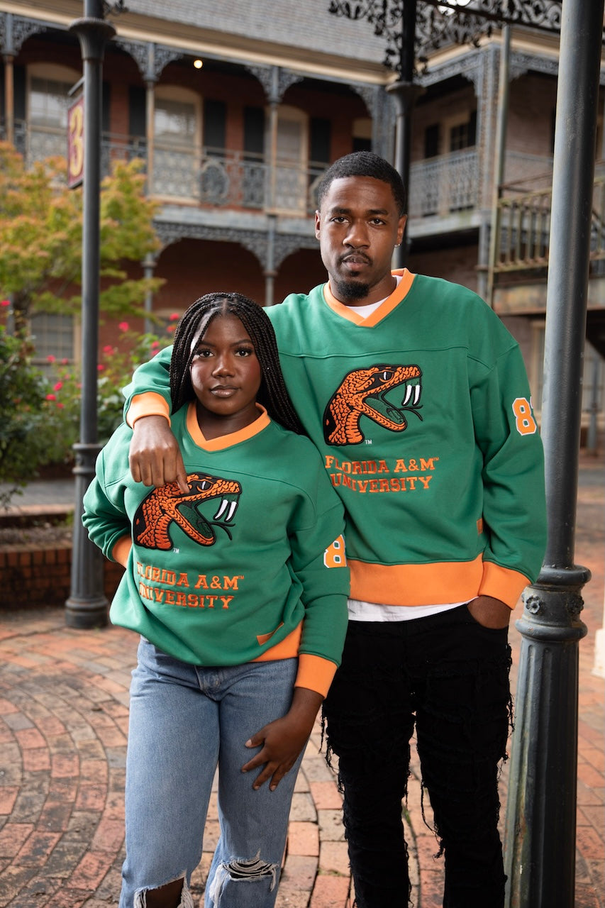 Elevate your Rattler spirit with a modern twist on a collegiate classic — the FAMU V-Neck Sweatshirt.