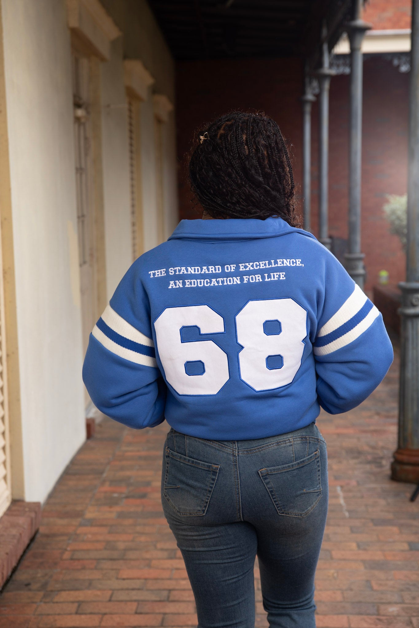 Varsity-style knit sleeve stripes