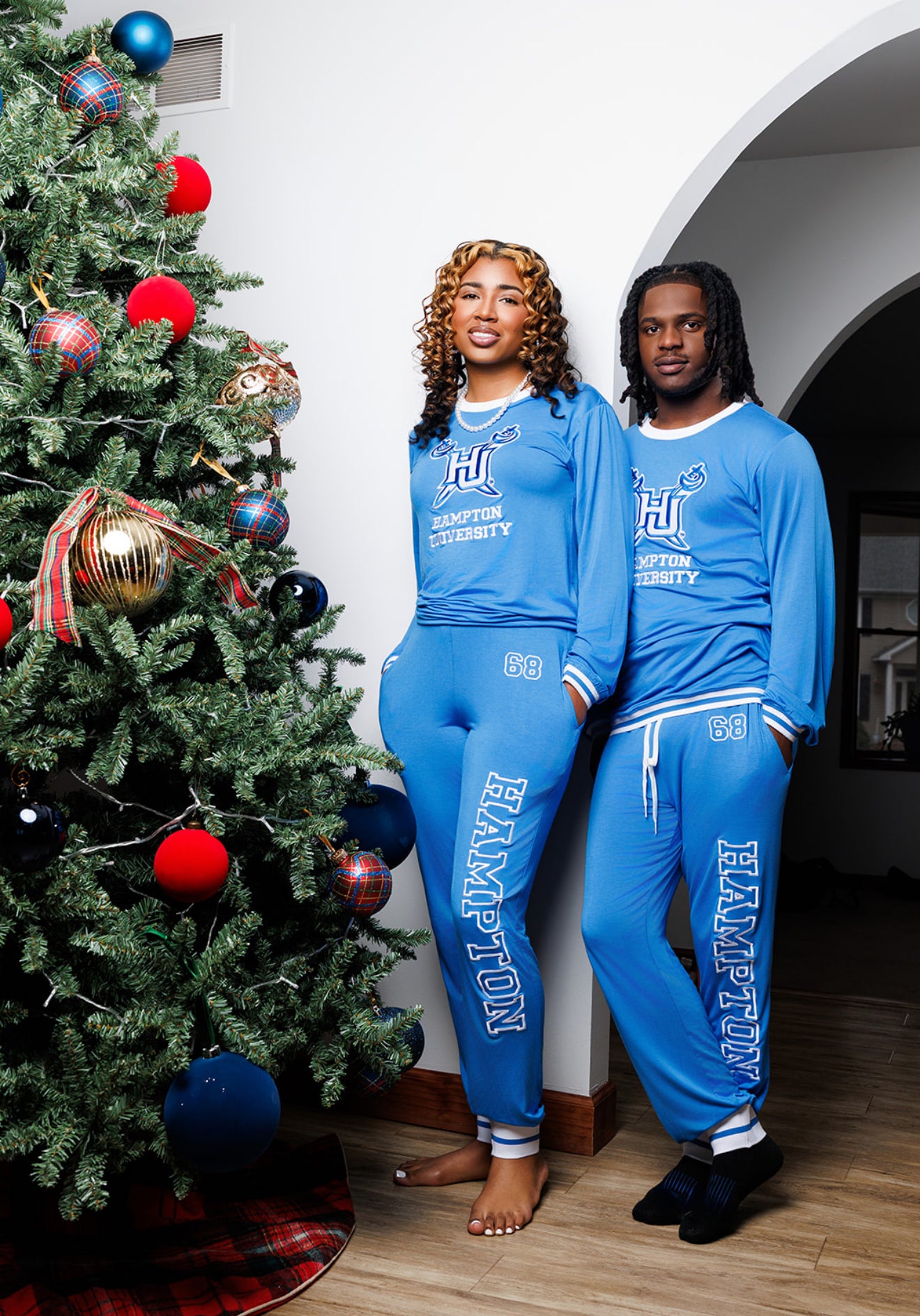 Our Hampton University 2-Piece Lounge Set is designed for ultimate comfort and relaxation. This cozy set includes a top and bottom, both featuring premium embroidered Hampton logos that showcase your Pirate pride. The long sleeves and pant legs are finished with solid Hampton blue cuffs for a clean, classic touch. Complete with a timeless crew neckline and convenient pant pockets, this unisex-fit set is perfect for lounging in true HU style.