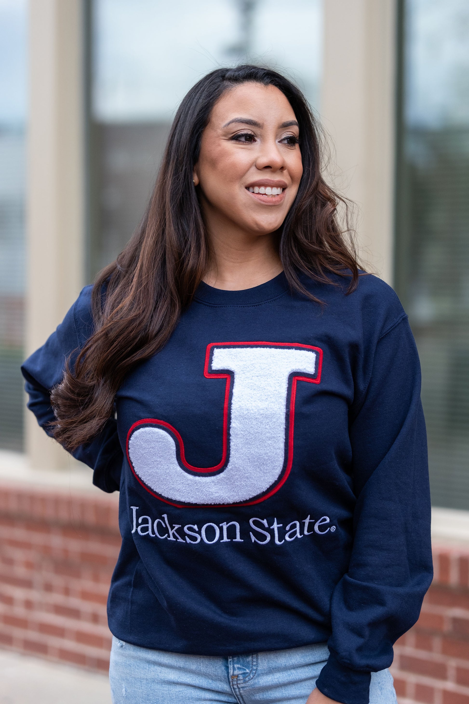 Dive into quality apparel with our Jackson State University, "J" Blue sweatshirt. Sweatshirt is adorned with lush chenille patches and superior embroidery threads. Elevating your wardrobe one thread a time.